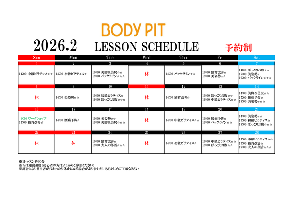 2月グループレッスンスケジュール